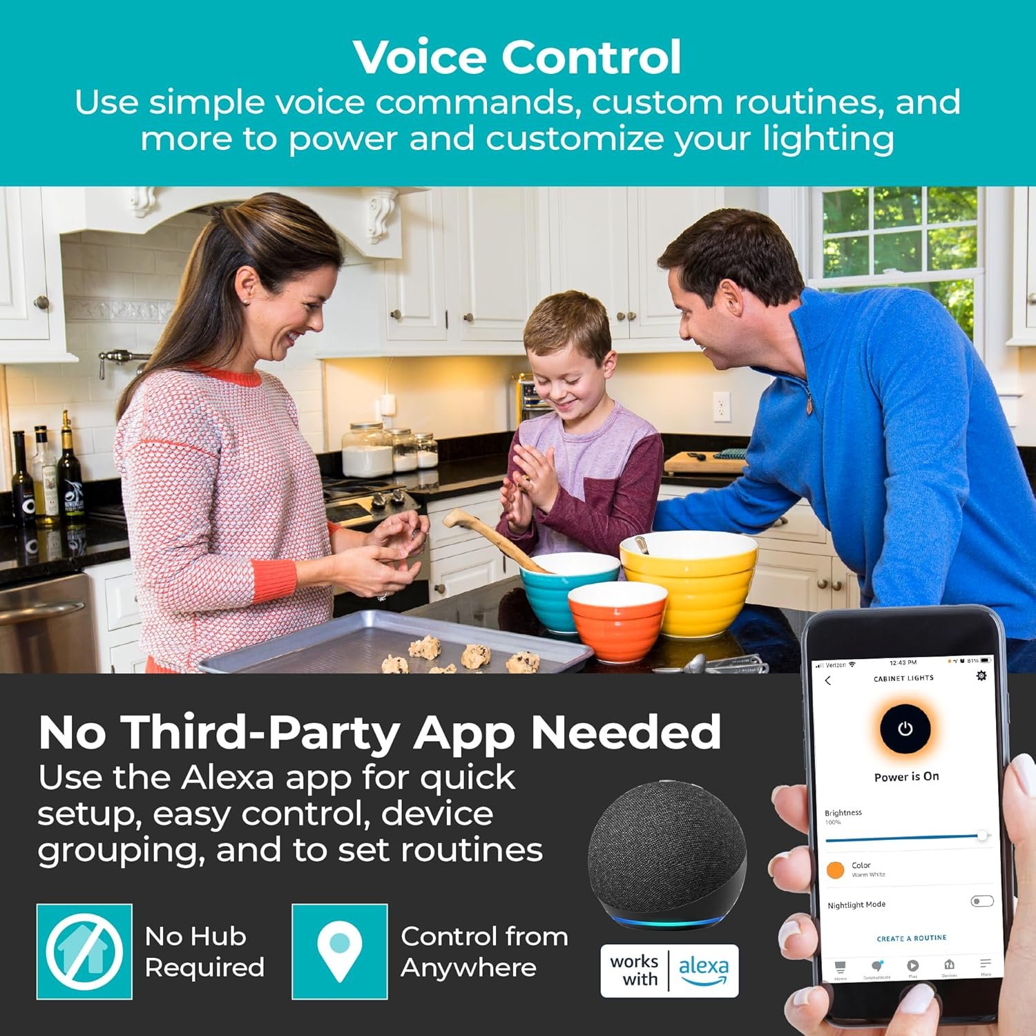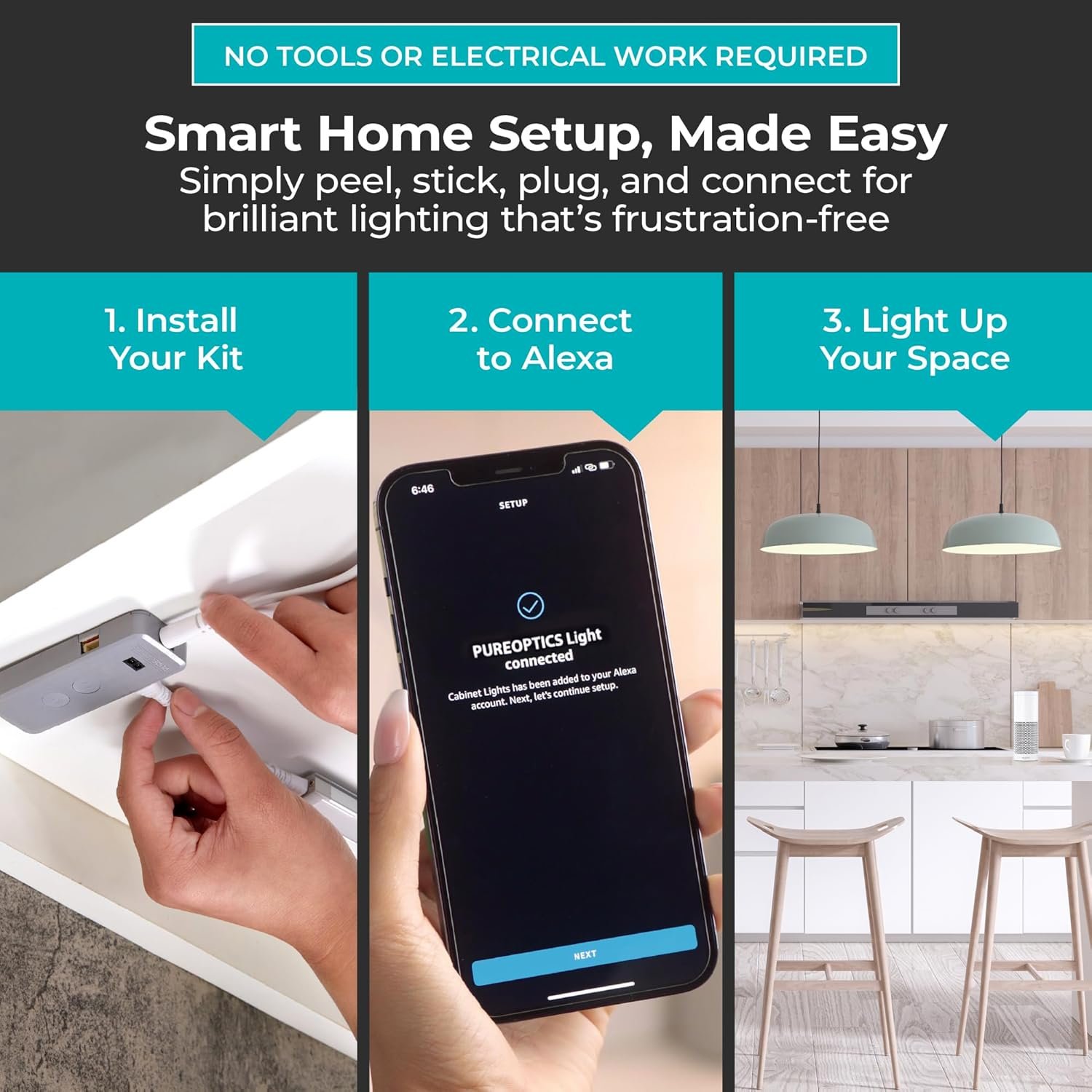 Urban Dwellers/Small Space Organizers: Alexa Lighting is ideal for renters or homeowners with small kitchens or limited electrical outlets—since installation is tool-free, removal is non-destructive.