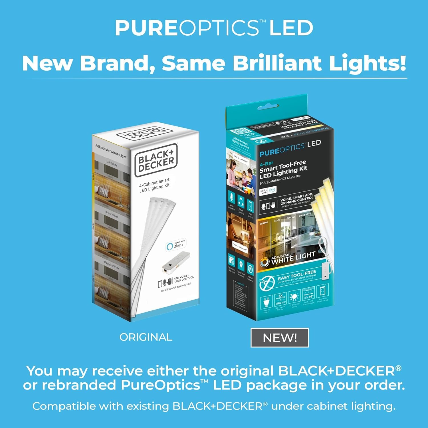 - Energy Efficient Lighting: PureOptics LEDs consume 85% less energy than standard incandescent bulbs and last up to 50,000 hours, making them a true cost-efficient solution for smart undercabinet needs.