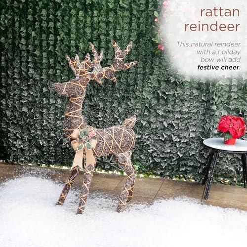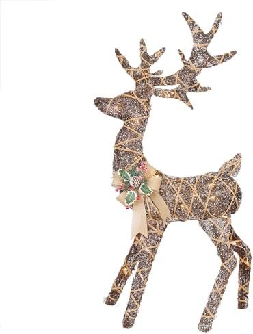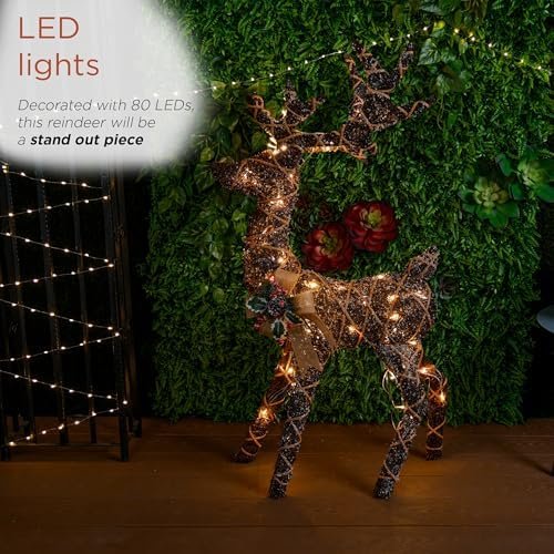 The Alpine Corporation 48″ Tall 3D Natural Rattan Reindeer with 80 Warm White LED Lights, Indoor/Outdoor Christmas Holiday Yard Decor Garden Display is a sophisticated holiday decoration designed to bring warmth, elegance, and festive charm to both indoor and outdoor environments. By combining natural rattan craftsmanship with soft, energy-efficient LED lighting, this decorative reindeer delivers a timeless Christmas aesthetic that enhances seasonal décor without overwhelming the space.