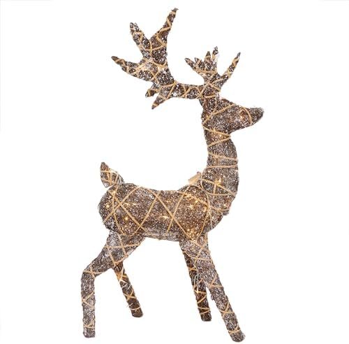 Why Choose the Alpine Corporation 48″ Tall 3D Natural Rattan Reindeer with 80 Warm White LED Lights, Indoor/Outdoor Christmas Holiday Yard Decor Garden Display