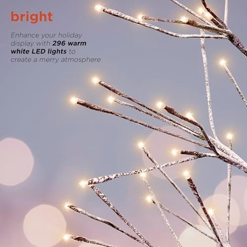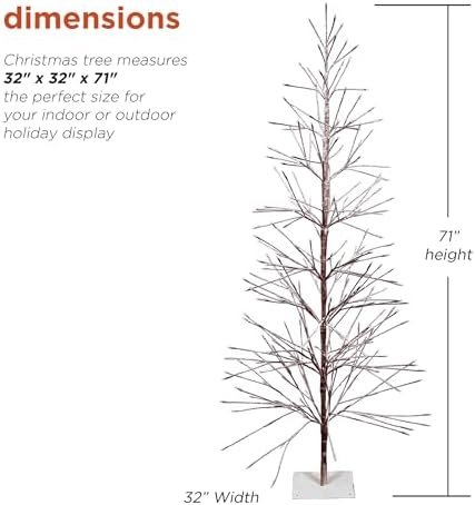 Enhance Your Holiday Décor with the Alpine Corporation 71″ Tall Flocked Artificial Brown Christmas Tree with 296 Warm White LED Lights, Indoor/Outdoor Holiday Decoration