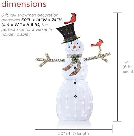 The Alpine Corporation 74″ (Over 6 Feet Tall) Outdoor Mesh Snowman Yard Decor with Red Birds and 100 Cool White LED Lights, Christmas Holiday Lighted Sculpture is a standout holiday decoration designed to transform your indoor and outdoor spaces into a festive winter wonderland. With an impressive height of over six feet, this illuminated snowman immediately captures attention and serves as a charming focal point for front yards, gardens, porches, walkways, and entryways. Its classic snowman design paired with elegant LED lighting makes it an ideal choice for anyone looking to elevate their Christmas décor with a high-impact seasonal display.