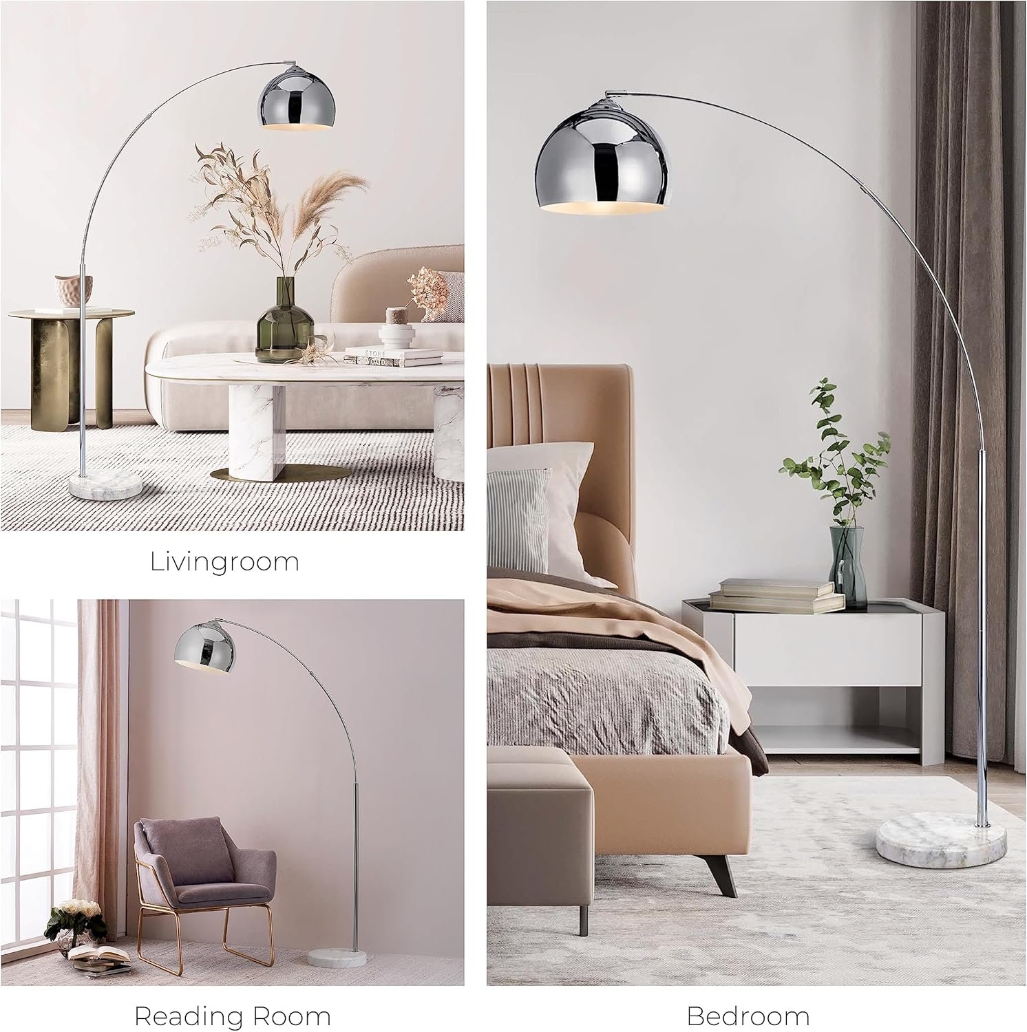 - Mid-Century Modern Design: Sleek, slender arced stem and a metallic chrome bell shade deliver instant style to living room lighting or any modern space.