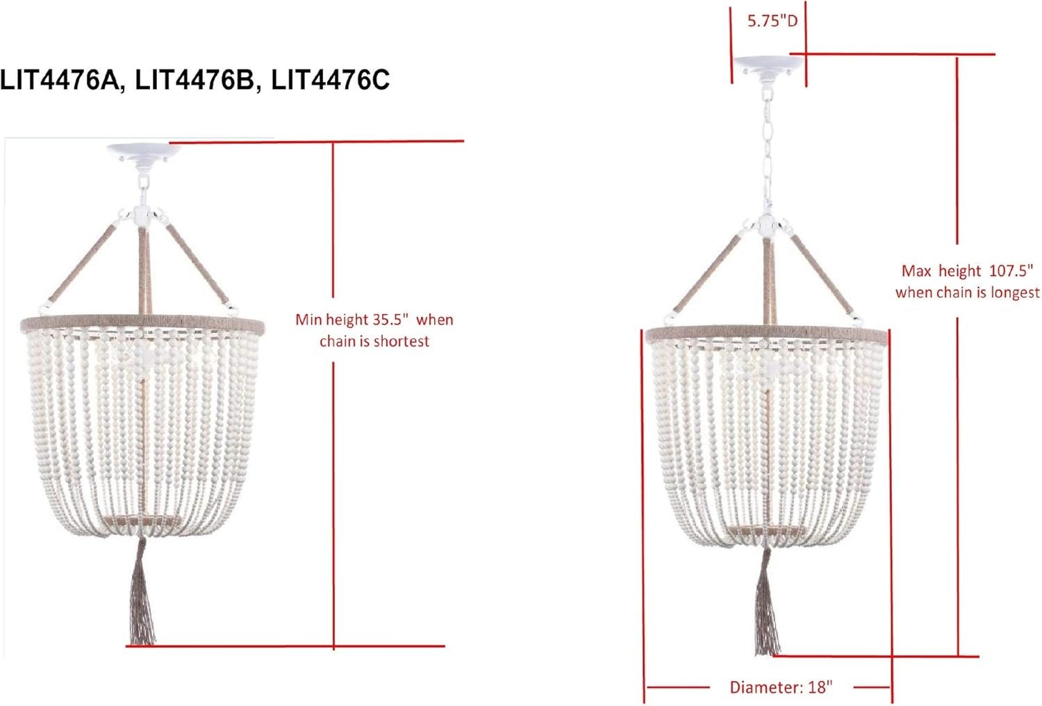 - Safety & Durability: The hardwired fixture is UL certified, crafted with a white iron frame supporting stylish acrylic bead lighting. Maintenance is simple and the look remains timeless.