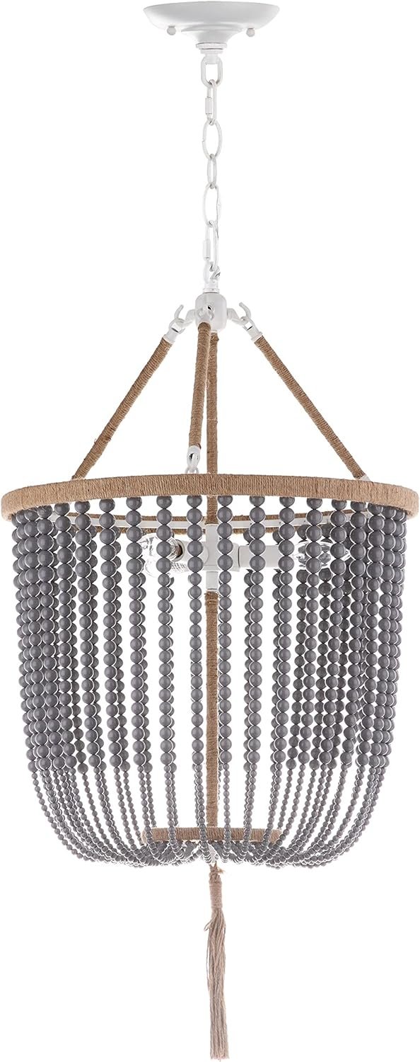 Who Should Buy SAFAVIEH Lighting Collection – Angie Boho Farmhouse Grey 3-Light Beaded Adjustable Pendant Chandelier with Tassel, LED Bulbs Included?