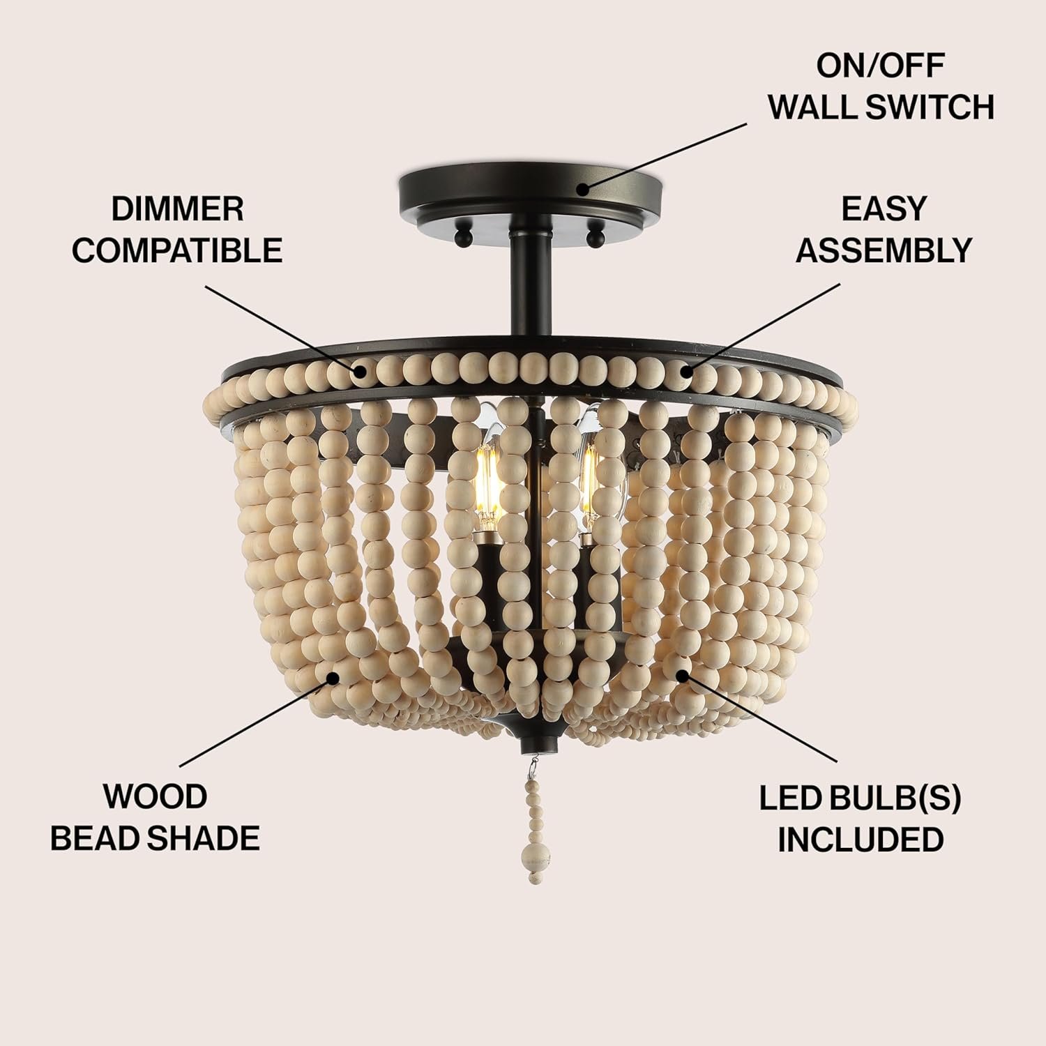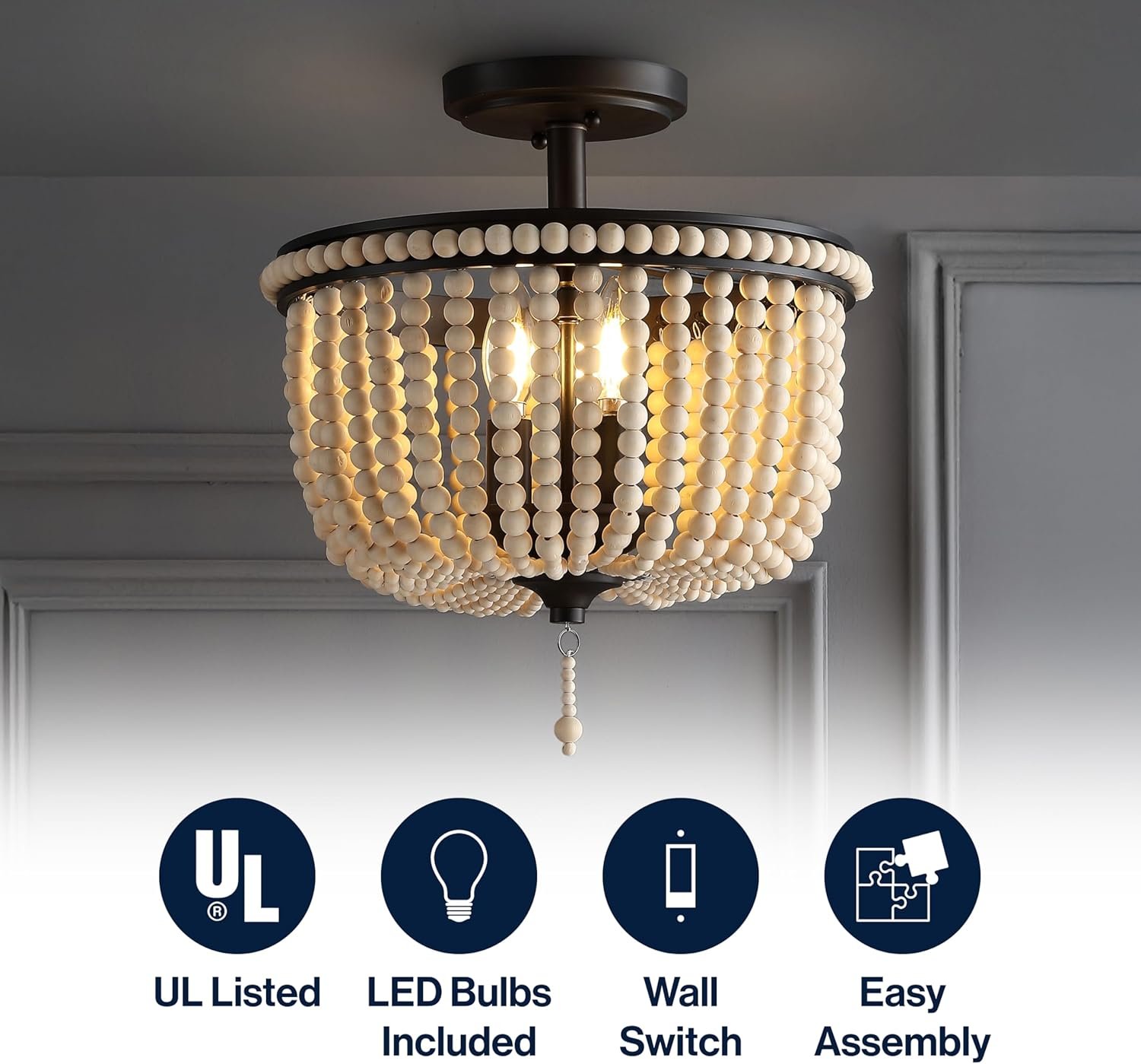 A: The JONATHAN Y JYL9020A blends both—the handcrafted wood beaded rim channels boho and farmhouse decor, while the black finish and semi flush profile suit modern ceiling fixture tastes. According to verified reviews on The Home Depot, it complements multiple interior styles.