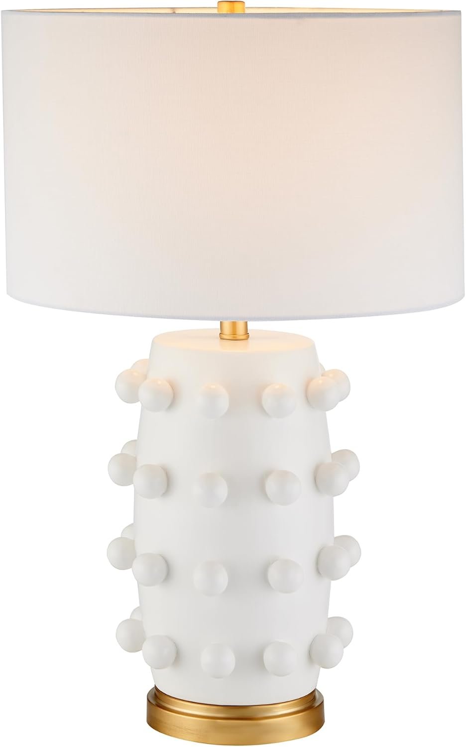Who Should Buy Henn&Hart 25.5” Modern 1-Light Ceramic Table Lamp with Spherical Orbs on Lamp Body with White Fabric Drum Shade for Living Room, Bedroom, or Office, Matte White?