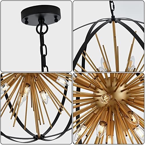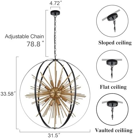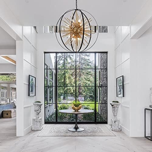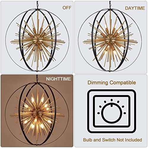 Energy Efficiency and Long-Term Value Complementing the Chandelier Modern Industrial Adjustable Hanging Ceiling Firework Pendant Light Fixture for Entryway Foyer Stairway Bedroom Dining Living Room Hallway Black Gold 16-Light Globe Sputnik