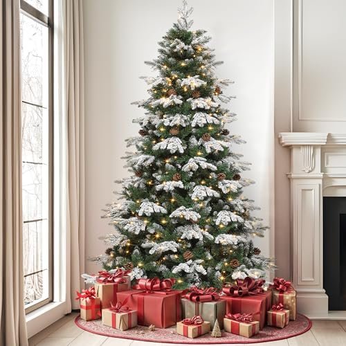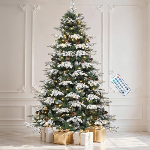 The DWVO Christmas Artificial Decoration with Remote-Controlled Lights, inspired by the Christmas Tree 6ft, Full Natural Green Alaska Pine with Snow, 29 Pine Cones and 300 LED Lights, is an excellent choice for anyone seeking a reusable, low-maintenance, and visually impressive holiday décor solution.