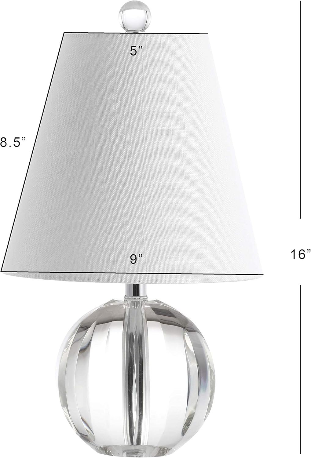 - Premium Materials & Modern Aesthetic: The centerpiece of this crystal lamp is a gently fluted clear glass orb base accented with chrome lamp accents and crowned with a white linen shade, creating an instant focal point for any bedroom or living room décor. The lamp stands at 16″ tall and 9″ wide—an ideal modern bedside lamp size.