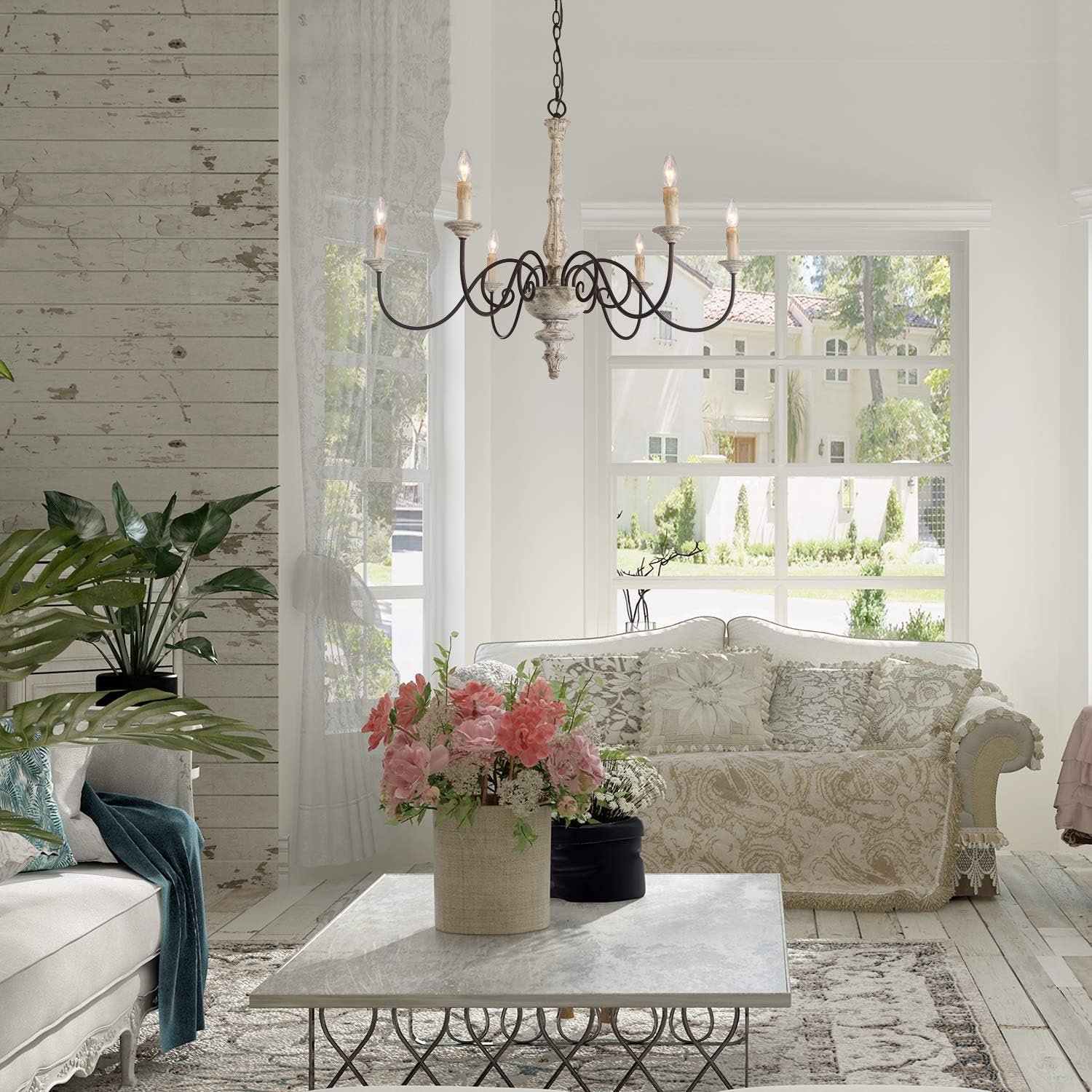 Who Should Buy LALUZ Farmhouse Chandelier, French Country Chandelier for Dining Room, White Distressed Wood, 37” L x 28” H?
