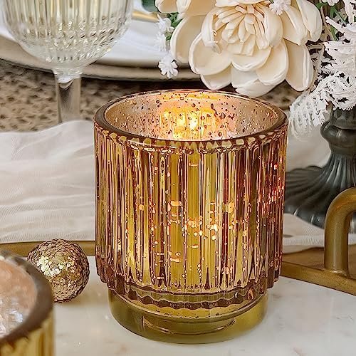 In conclusion, the Kate Aspen Gold Votive Candle Holders – Vintage Ribbed Glass Candle Holder Set of 6 – Mercury Glass Tealight Holders for Christmas Table Decor, Holiday Centerpieces, Fall Thanksgiving Tablescape combine refined design, durability, and versatility in a single decorative set. Whether used for festive holiday tables, elegant events, or everyday home styling, these candle holders provide a warm and sophisticated finishing touch that enhances any environment throughout the year.