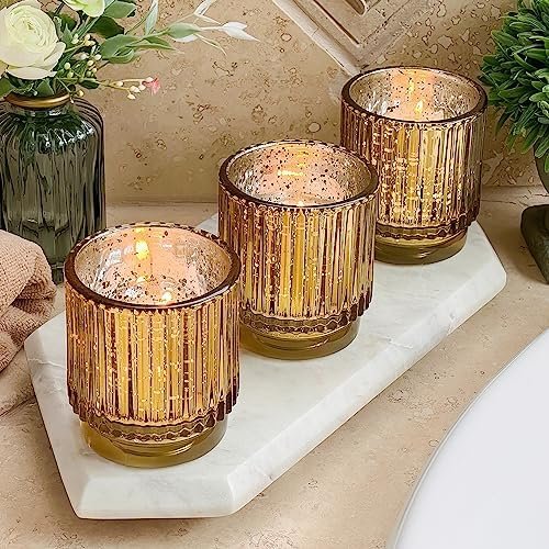 Kate Aspen Gold Votive Candle Holders – Vintage Ribbed Glass Candle Holder Set of 6 – Mercury Glass Tealight Holders for Christmas Table Decor, Holiday Centerpieces, Fall Thanksgiving Tablescape