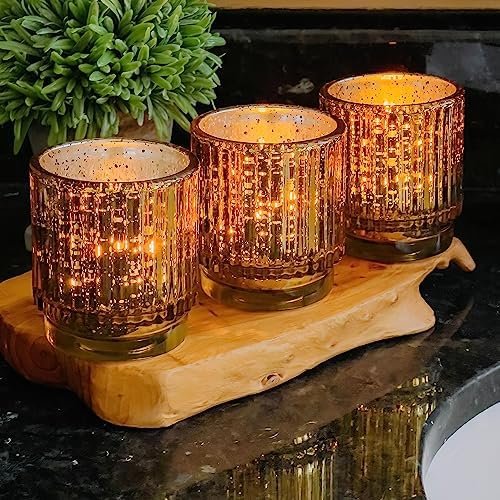 The Kate Aspen Gold Votive Candle Holders – Vintage Ribbed Glass Candle Holder Set of 6 – Mercury Glass Tealight Holders for Christmas Table Decor, Holiday Centerpieces, Fall Thanksgiving Tablescape are refined decorative accents designed to elevate interior spaces and special events with warmth, elegance, and timeless appeal. Inspired by classic vintage décor, this thoughtfully crafted set brings together visual sophistication and practical versatility, making it a valuable addition to both everyday home styling and seasonal celebrations.