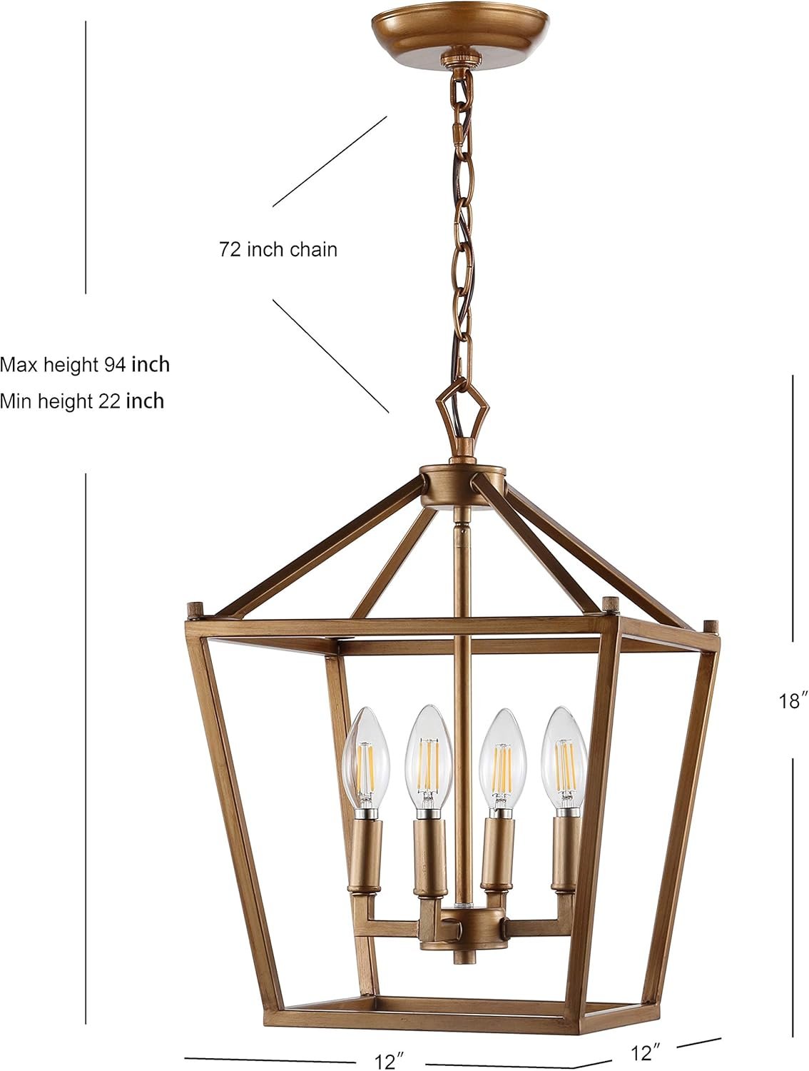 - Industrial Metal Cage Pendant: A true metal cage pendant with sturdy, ETL listed lighting safety and an antique gold finish, this lantern chandelier delivers vintage character and durability.