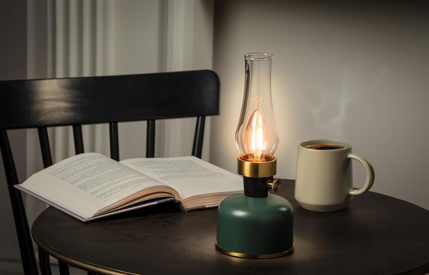 A: The dimmable Edison bulb lamp provides a warm, nostalgic glow making it feel remarkably close to classic vintage lantern light but with modern convenience and safety.