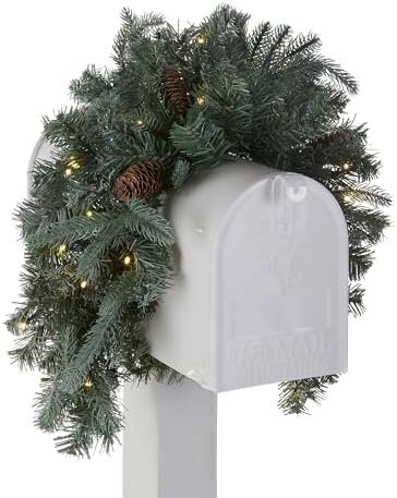 Why Choose the National Tree Company ‘Feel Real’ Pre-lit Artificial Christmas Mail Box Swag | White LED Lights | Frosted Artic Spruce – 36 Inch