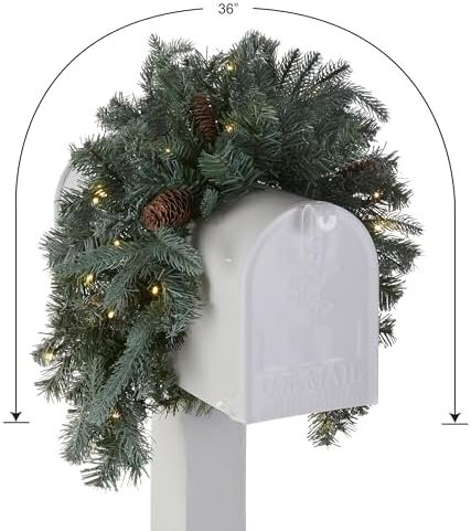 With its realistic frosted spruce branches, elegant white LED lighting, battery-operated flexibility, and flame-retardant construction, the National Tree Company ‘Feel Real’ Pre-lit Artificial Christmas Mail Box Swag | White LED Lights | Frosted Artic Spruce – 36 Inch is a timeless holiday accent that enhances Christmas décor with minimal effort and maximum visual impact.