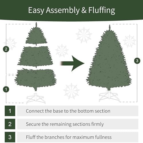 A sturdy two-section assembly ensures seamless construction: simply connect the sections, unfold the branches, and adjust the silhouette to your liking. The included metal stand offers durability and balance, securing the tree throughout the entire holiday season.