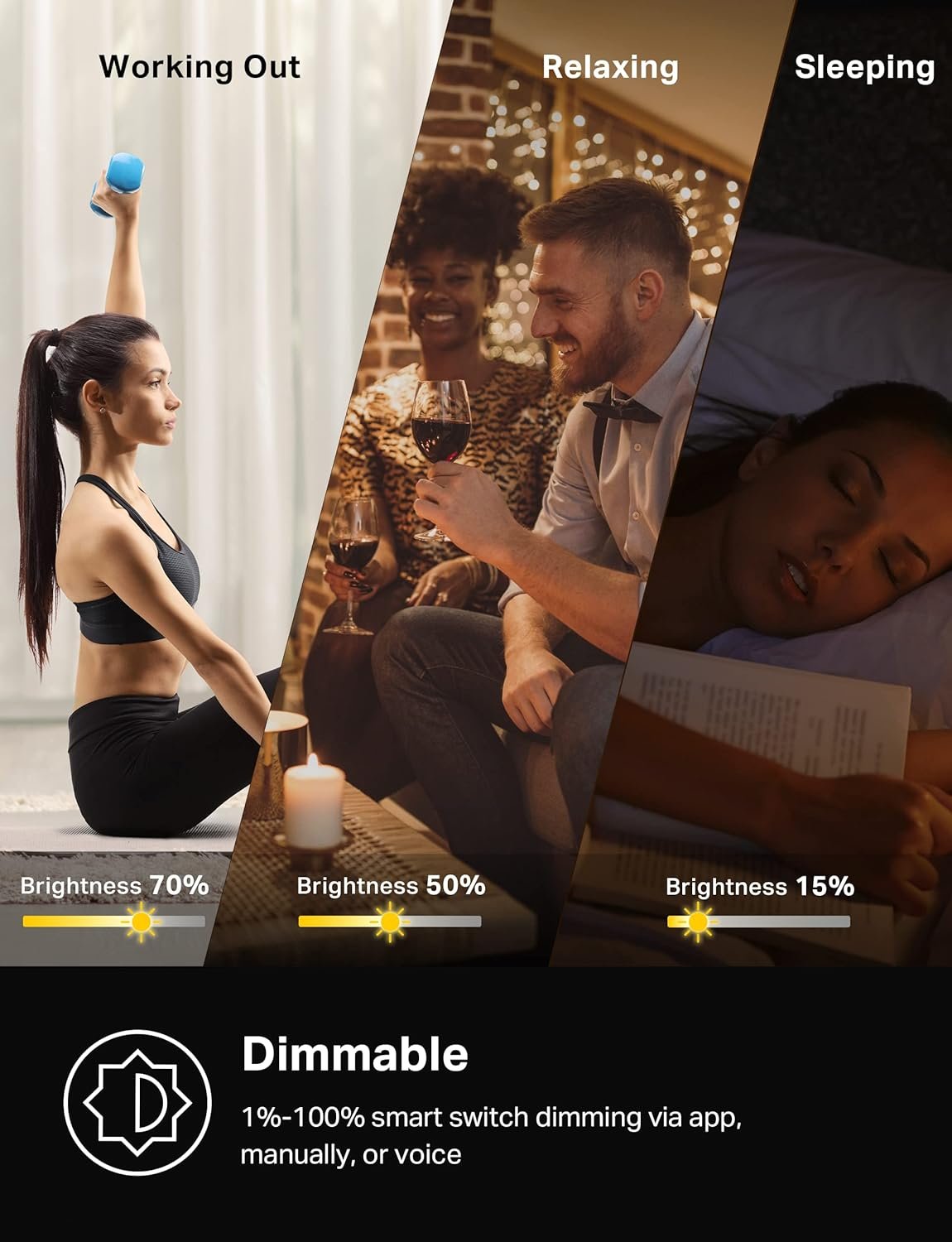 - Dimmable Light Switch (1%-100%): Set the exact lighting mood you want, whether it’s soft evening tones or bright-clean workspace lighting. The Kasa or Tapo app lets you adjust up or down at any time, and scheduling means your lights naturally fit your routine.