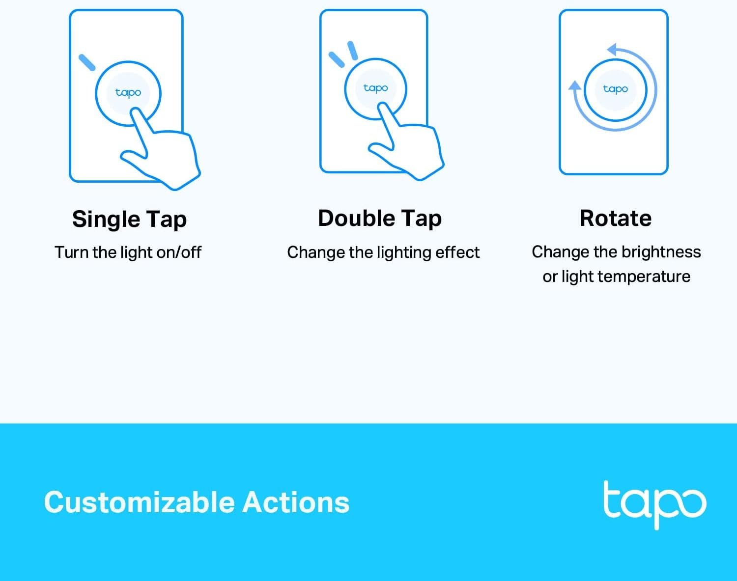 - 3-Way Control & More: Set single tap, double tap, and rotate actions for distinct scenes, or control multiple Tapo smart lights—from a single remote lighting interface.