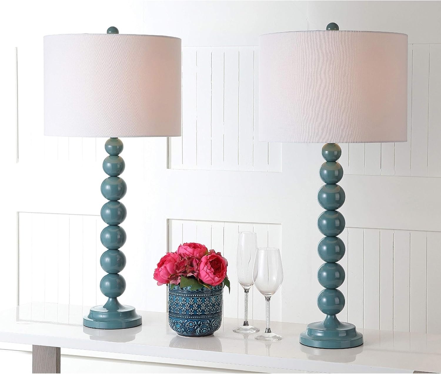 Who Should Buy SAFAVIEH Lighting Collection – Jenna Set of 2 Marine Blue Stacked Ball Table Lamps with White Drum Shades, 32-Inch Modern Bedroom or Living Room Lamps, LED Bulbs Included (LIT4090C-SET2)?