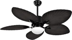 • Weather Resistant Blades: The five palm leaf blades are crafted from high-quality ABS plastic, ensuring all-weather durability and lasting performance—even in damp-rated environments like covered patios.