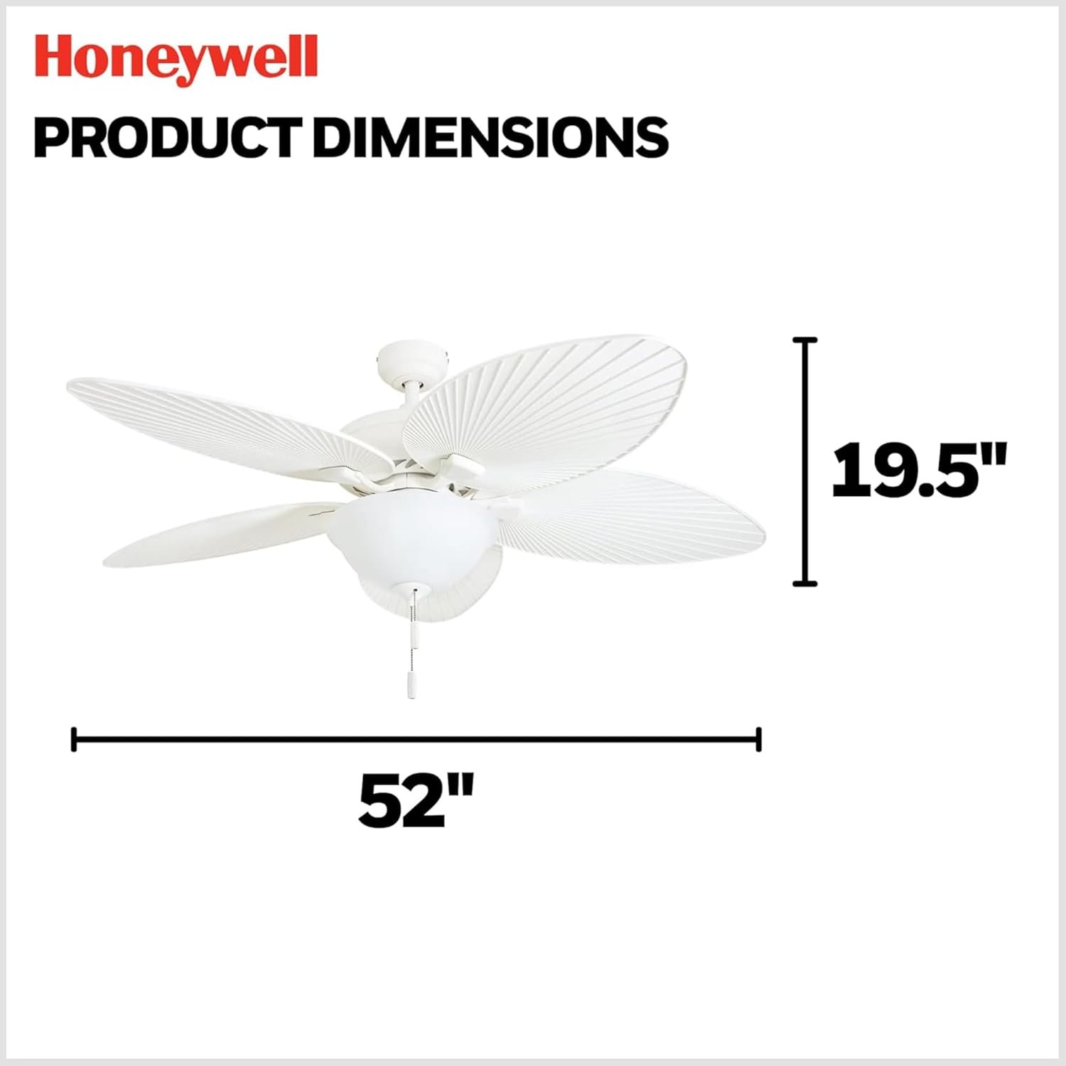 The Honeywell Palm Island 52 Inch Tropical Ceiling Fan combines stylish, all-weather palm leaf blades and quiet performance, making it a durable and attractive choice for medium-sized indoor or covered outdoor spaces. Enjoy versatile installation options and easy operation from a brand known for quality and reliability.